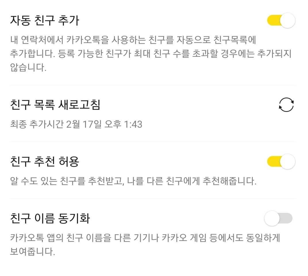 위의 그림처럼 창이 뜨면 '친구 목록 새로고침'을 클릭해주세요